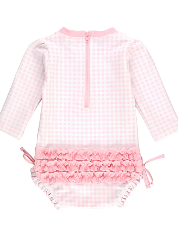 Baby Girls Pink Gingham Long Sleeve One Piece Rash Guard