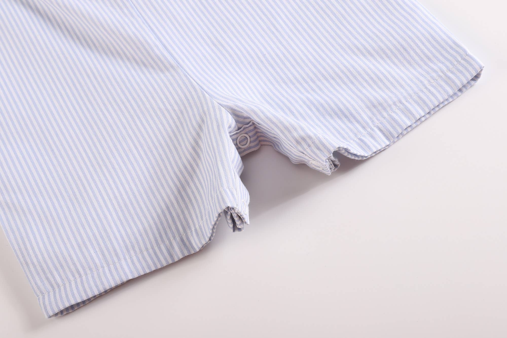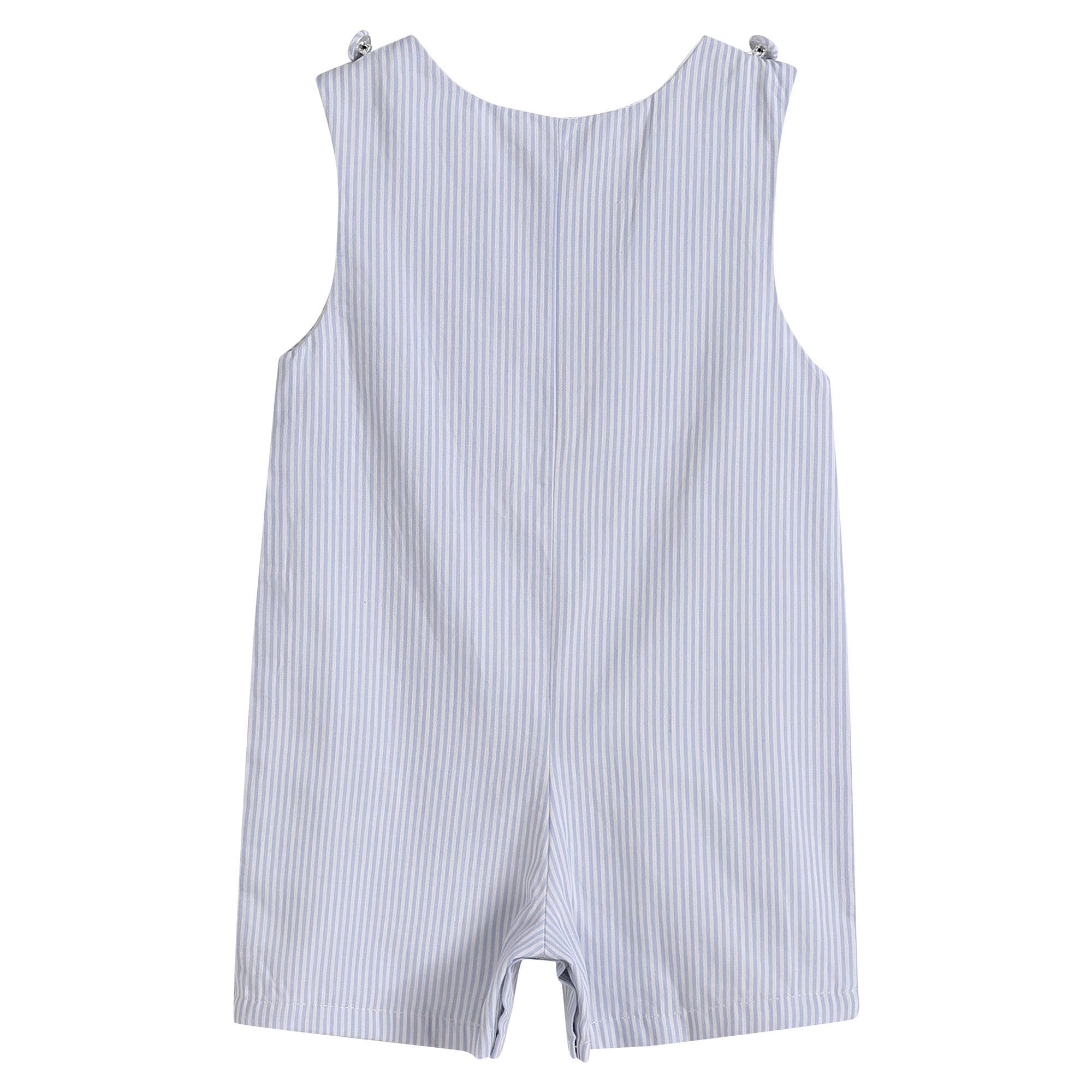 Barktacular! These adorable blue seersucker shortalls are adorned with a cute puppy applique. Your little guy will be ready to "ruff" and tumble whether you are playing at the park or just enjoying a day at home.