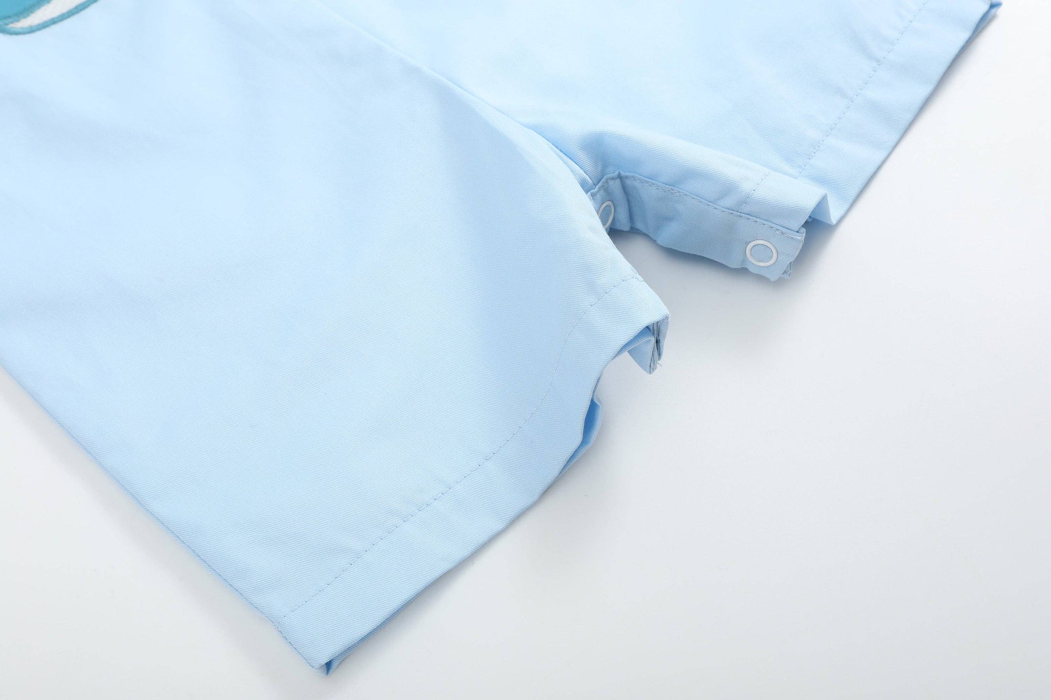 Make a splash with these adorable Blue Whale Appliqué Shortalls! Featuring a charming whale appliqué on the front, this outfit is perfect for summer days and seaside adventures. Made from soft, lightweight fabric, it’s designed to keep your little one cool and comfortable. Snaps at the crotch make diaper changes quick and easy, while adjustable buttons at the shoulders offer a flexible fit as your baby grows. Ideal for everyday wear or special outings, these sweet shortalls are available in sizes 3–6M to 2T.