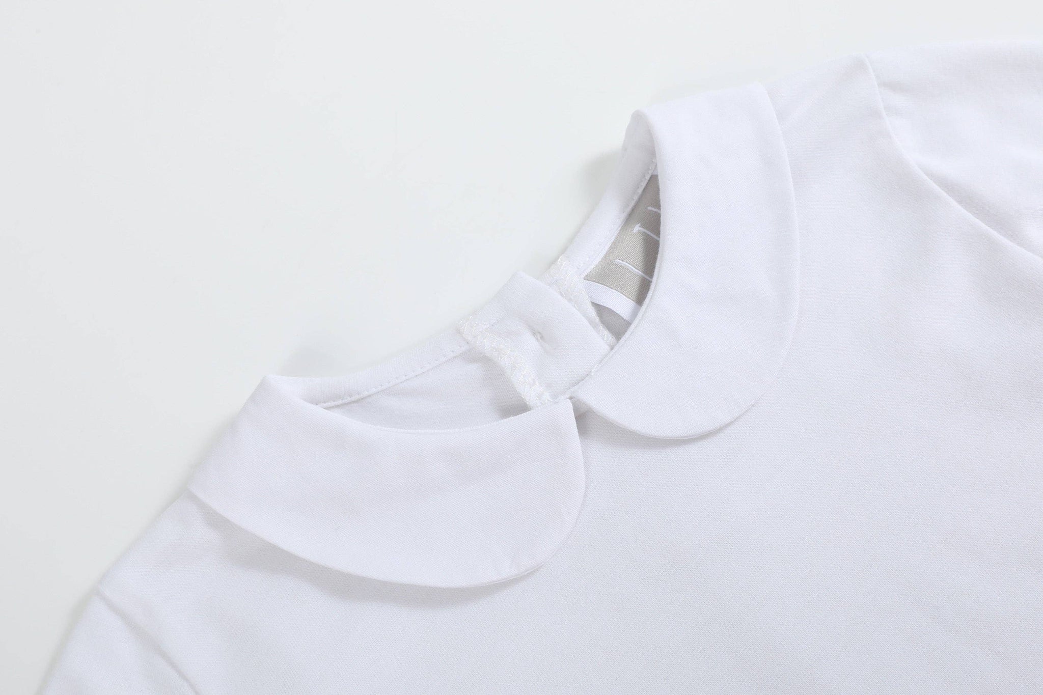 This versatile White Collared Shirt is a must-have for your little girl's wardrobe. Featuring a classic collar and long sleeves, it pairs beautifully with our Ruffle Jumper Dresses for a polished look. The collar is perfect for monogramming or embroidery, adding a personalized touch for special occasions or everyday elegance. Made for comfort and style, it’s a timeless choice.